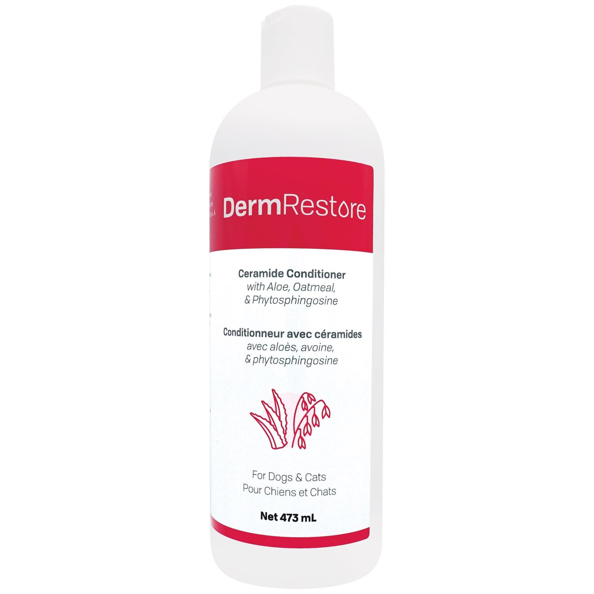 DermRestore Ceramide Conditioner is a pleasantly scented general bathing and grooming conditioner. It also soothes dry skin without removing the natural lipid oils. Use on dogs and cats with no age restriction.