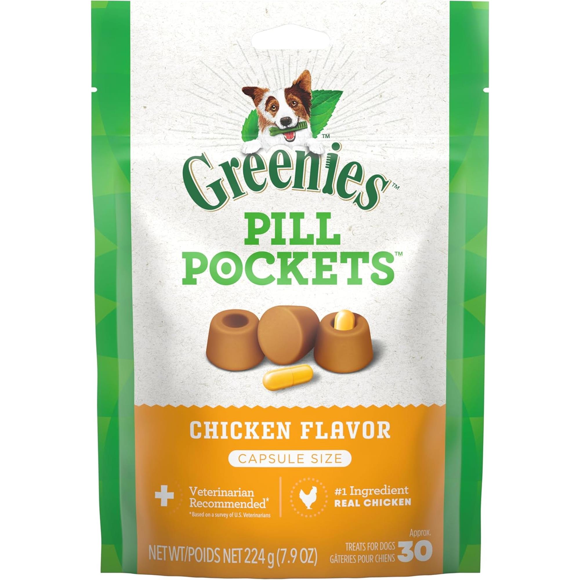 Give your dog their medicine, vitamin, or supplement the smart way with GREENIES PILL POCKETS Dog Treats. GREENIES PILL POCKETS are designed and recommended by veterinarians as a great way to give your four-legged friend their medication. Available in both capsule and tablet sizes, GREENIES PILL POCKETS help you give your dog their medicine without the mess and stress of hiding it in human food.