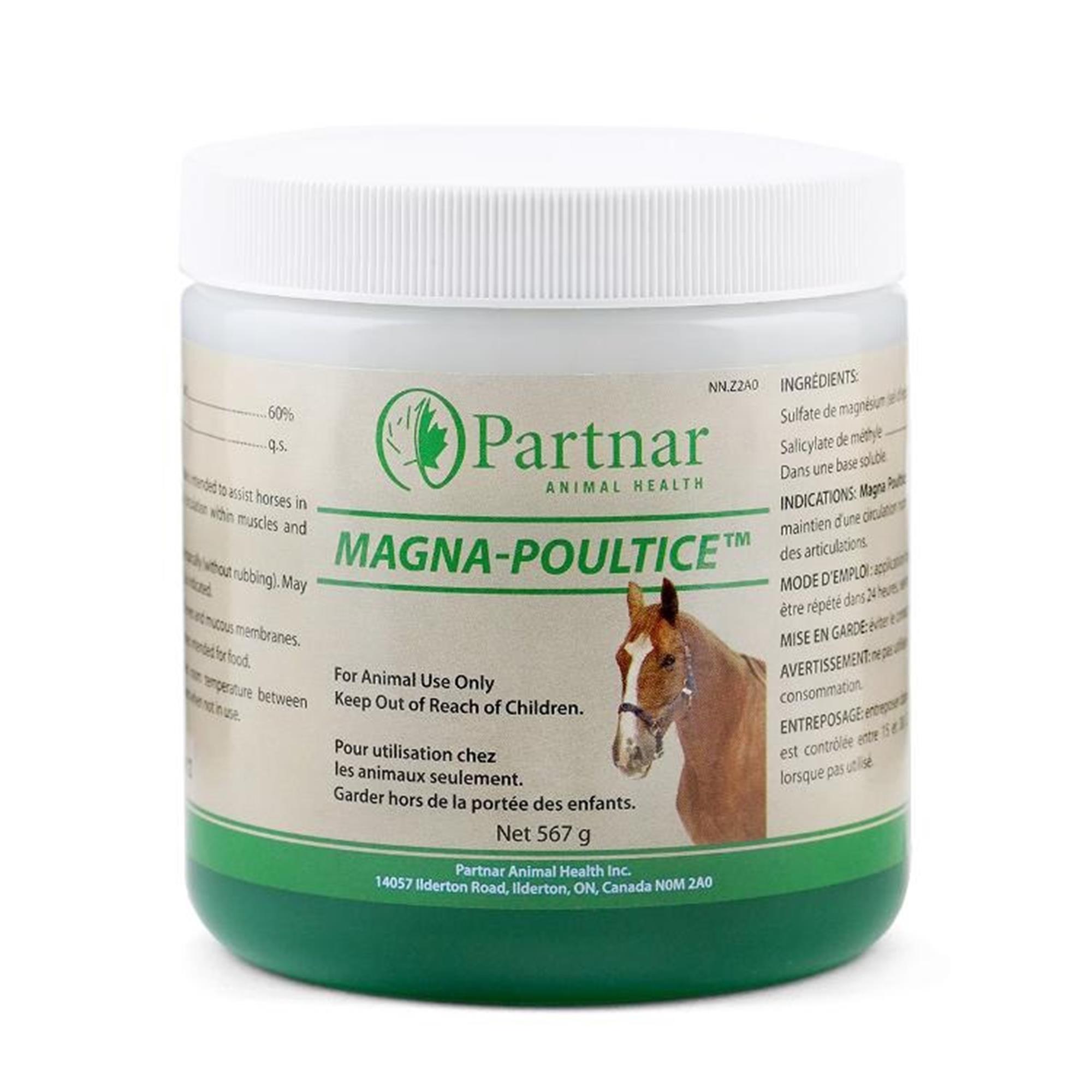 A poultice paste for use on horses and cattle. Apply Magna Poultice to strains, sprains, bruises, swellings, acute mastitis and swollen glands. Contains 60% epsom salt in a water soluble base.