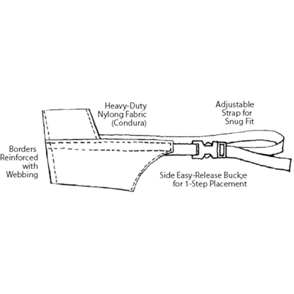 High-quality water resistant nylon muzzle with a side easy-release snap buckle, fits securely with adjusting straps for a snug fit and reinforced stitching to assure long-lasting use. Size Large is for dogs between 40 and 70 lbs., with snout circumference of 6.5 inches.